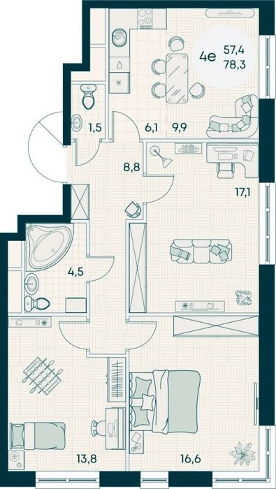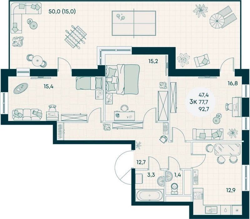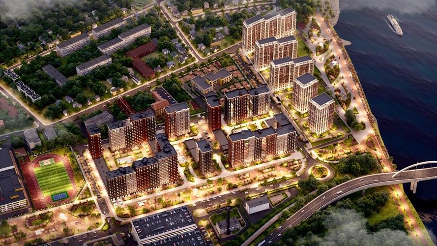 В жилом комплексе предусмотрены школа на 1 100 мест и детский сад на 300 мест, собственная благоустроенная набережная вдоль Кубани, дворы без машин и прогулочные зоны среди зелени. Фасады‑монолит‑кирпич, террасы и панорамные виды создают атмосферу дома, где удобно жить, работать и отдыхать. Жизнь внутри‑напротив‑города, но с ощущением полного уединения.