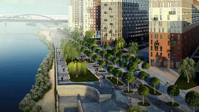 Жилой квартал у реки Кубань с набережной и зелёными аллеями