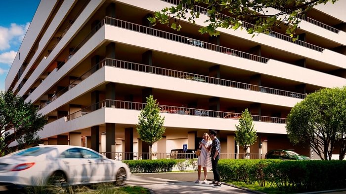Подземный и наземный паркинг рассчитан почти на 2500 автомобилей. Есть кладовые помещения, зарядки для электрокаров и лапомойки для собак — всё продумано для удобства и порядка.