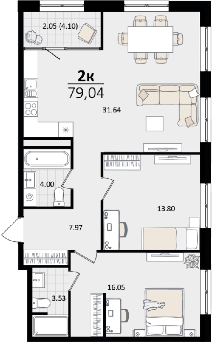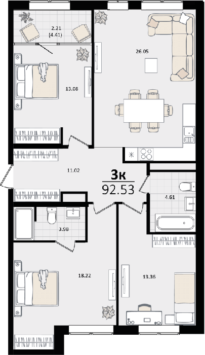 Квартиры от 35 до 270 м² с потолками до 3 м и панорамными окнами. Закрытые дворы, двухуровневый подземный паркинг, премиальный фитнес и термальные зоны, школа и три детских сада на территории — здесь каждый день наполнен удобством, светом и зеленью.